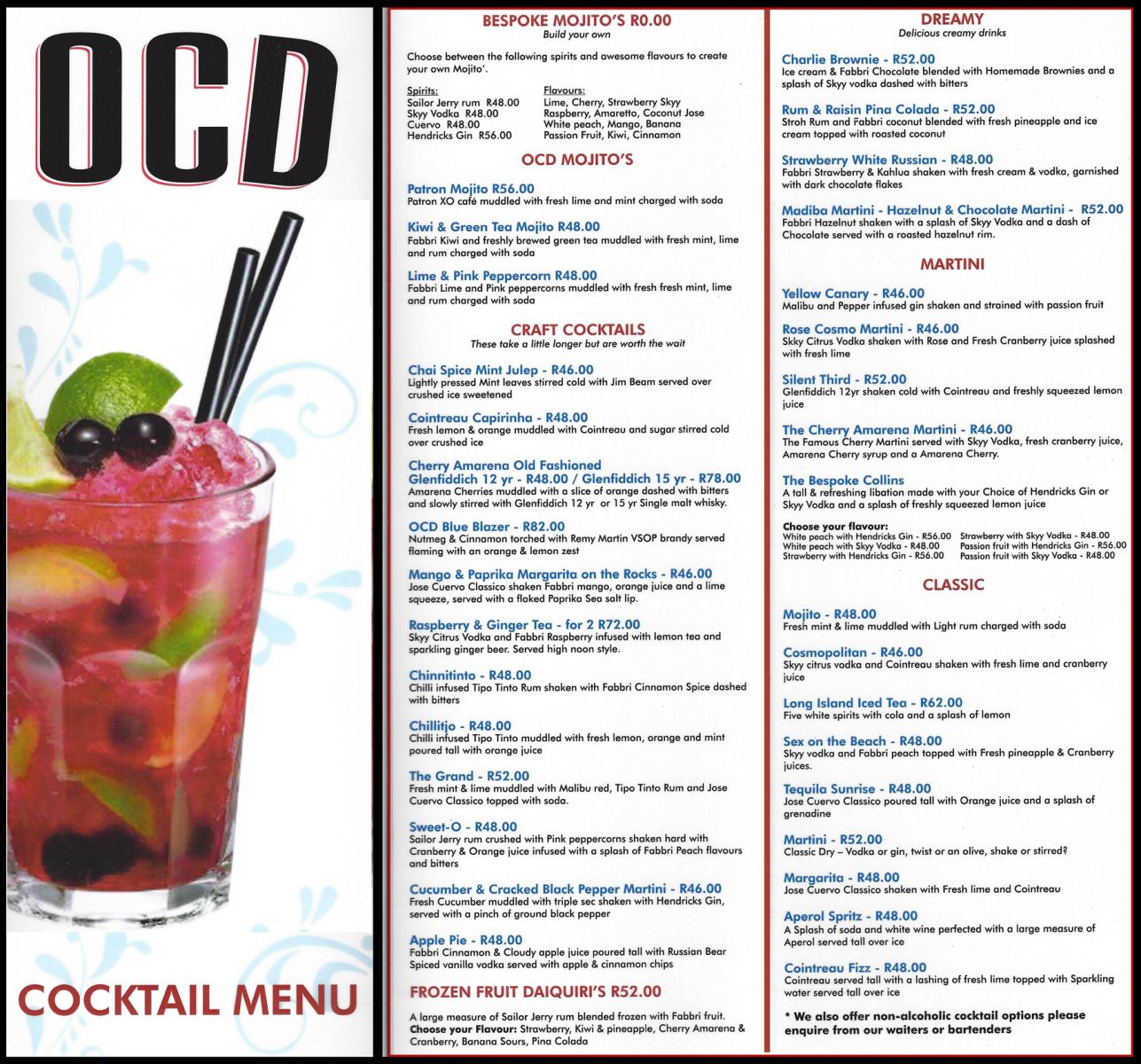 With years of experience and excellence comes the ability to produce a truly outstanding concept to excite and re-ignite vibrant ideas. OCD marches into Johannesburg with the mission to surprise and rejuvenate the current cocktail bar social scene with the exploration of good music, outstanding food and explosive cocktails.
